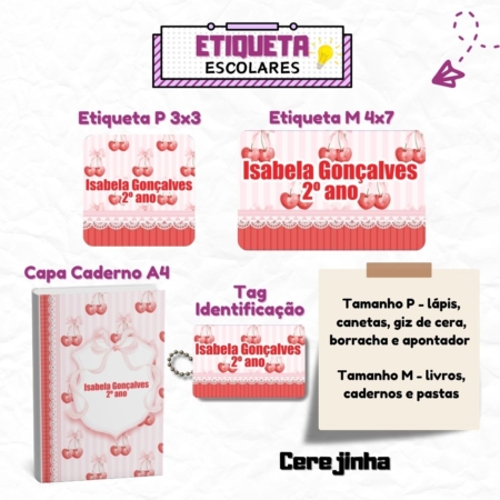 • Kit Etiquetas Escolares Cerejinha Personalizadas