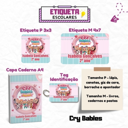 • Kit Etiquetas Escolares Cry Babies Personalizadas