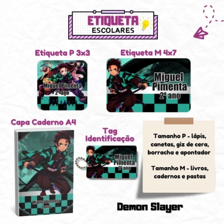 • Kit Etiquetas Escolares Demon Slayer Personalizadas