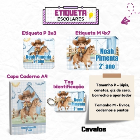 • Kit Etiquetas Escolares Cavalos Personalizadas