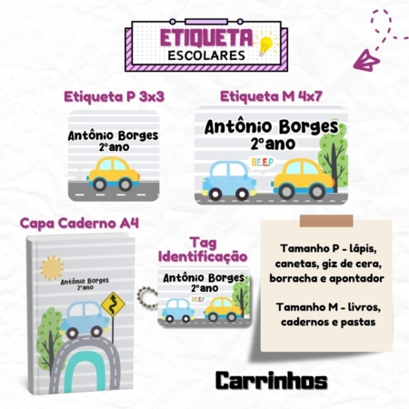 • Kit Etiquetas Escolares Carrinhos Personalizadas