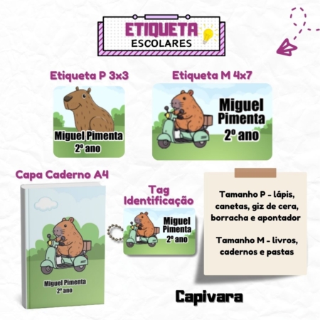 • Kit Etiquetas Escolares Capivara Menino Personalizadas