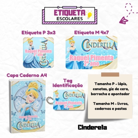 • Kit Etiquetas Escolares Cinderela Personalizadas