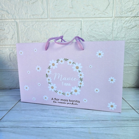 • Sacola Média Personalizada Jardim Das Margaridas/Lembrancinha/Festa Infantil