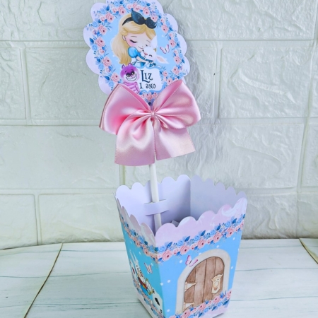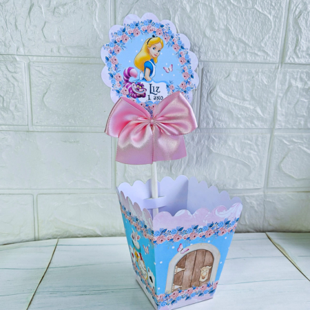 • Centro de Mesa Alice No País Das Maravilhas – Cachepô Personalizado para Aniversário Infantil