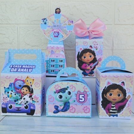 • Caixas PEGUE E MONTE Casa Mágica Da Gabby Personalizada/Festa Infantil/Aniversário/Lembrancinha