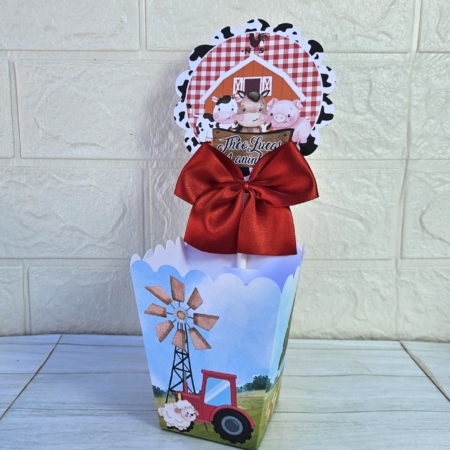 • Centro de Mesa Fazendinha Vermelha – Cachepô Personalizado para Aniversário Infantil