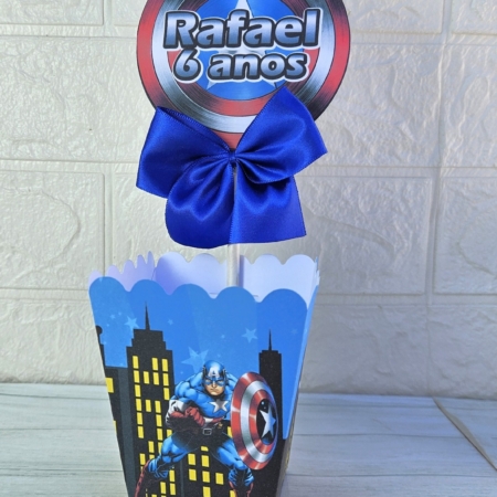 • Centro de Mesa Capitão América – Cachepô Personalizado para Aniversário Infantil