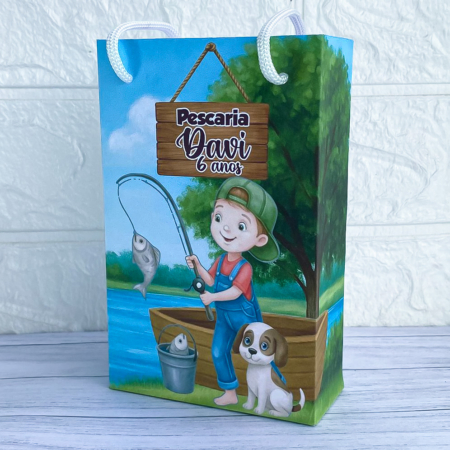 • Sacola Média Personalizada Pescaria/Lembrancinha/Festa Infantil