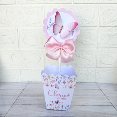 • Centro de Mesa Jardim Das Borboletas Rosa – Cachepô Personalizado para Aniversário Infantil